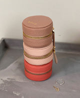 Design: Our multifunctional Leather Round Case is designed with effortless beauty. It's perfect for travel or as an organizer for your daily needs.